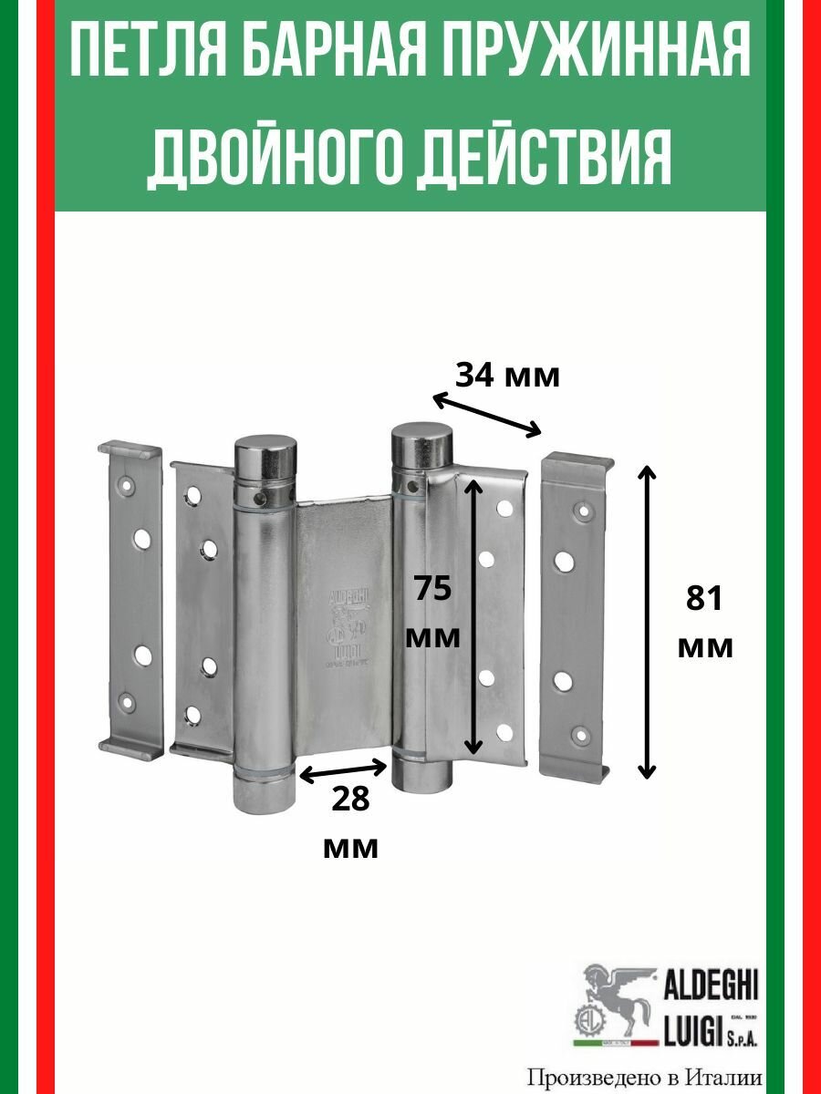 Барная пружинная петля двойного действия ALDEGHI LUIGI SpA 75х34х28 мм, к-т: 2 шт + ключ с декоративными заглушками, Петли под покраску. информация: