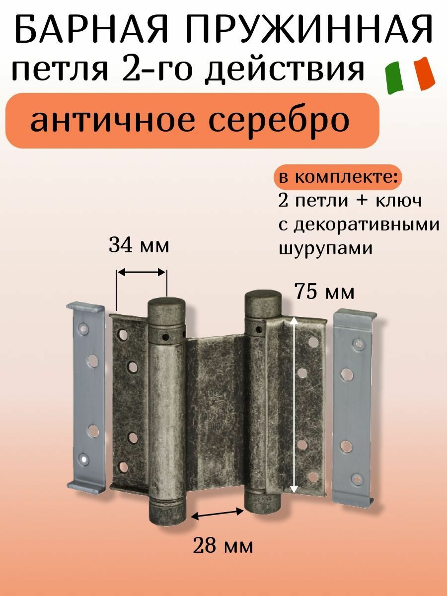 10 цен на Барная пружинная петля двойного действия ALDEGHI LUIGI SpA 75х34х28 мм, античное серебро, к-т: 2 шт + ключ с декоративными шурупами, 101FA075B2