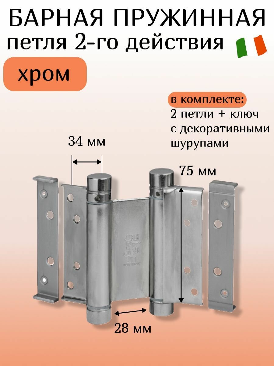 Барная пружинная петля двойного действия ALDEGHI LUIGI SpA 75х34х28 мм, хром, к-т: 2 шт + ключ с декоративными заглушками, 101AC075B2 информация: