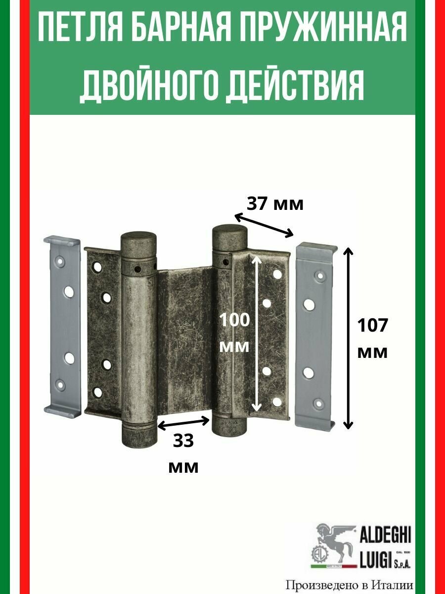 Барная пружинная петля двойного действия ALDEGHI LUIGI SpA 100х37х33 мм, античное серебро, к-т: 2 шт + ключ с декоративными заглушками, 101FA100B2 информация: