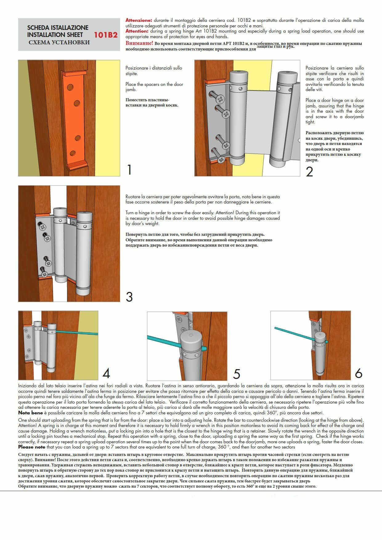 Барная пружинная петля двойного действия ALDEGHI LUIGI SPA 125х48х42 мм, цвет: никель, к-т: 2 шт + ключ с декоративными шурупами 101AN125B