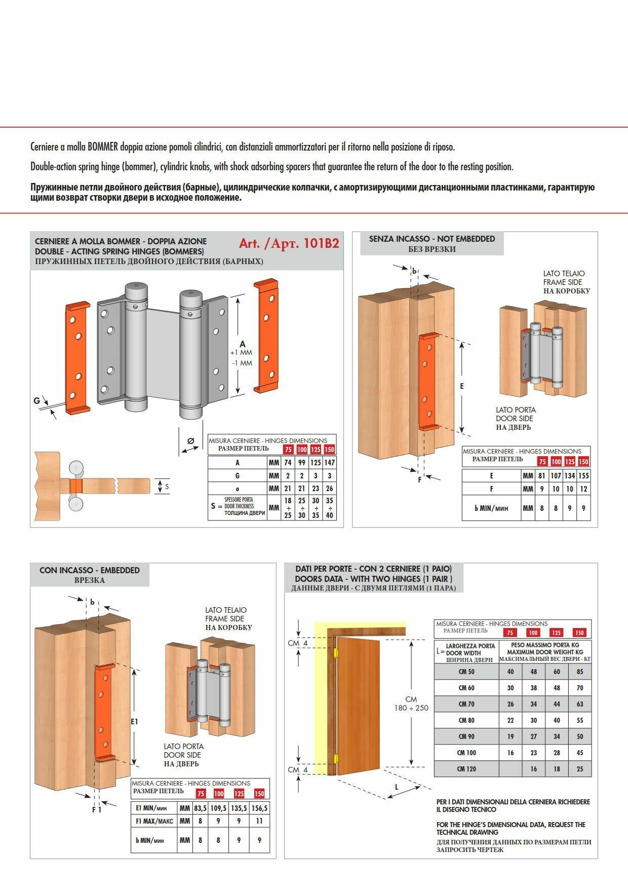 Aldeghi Luigi SPA Петля двойного действ. барная 125х48х42 мм, к-т: 2 шт + монтаж.набор 101AN125B