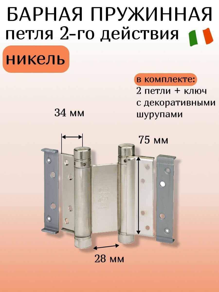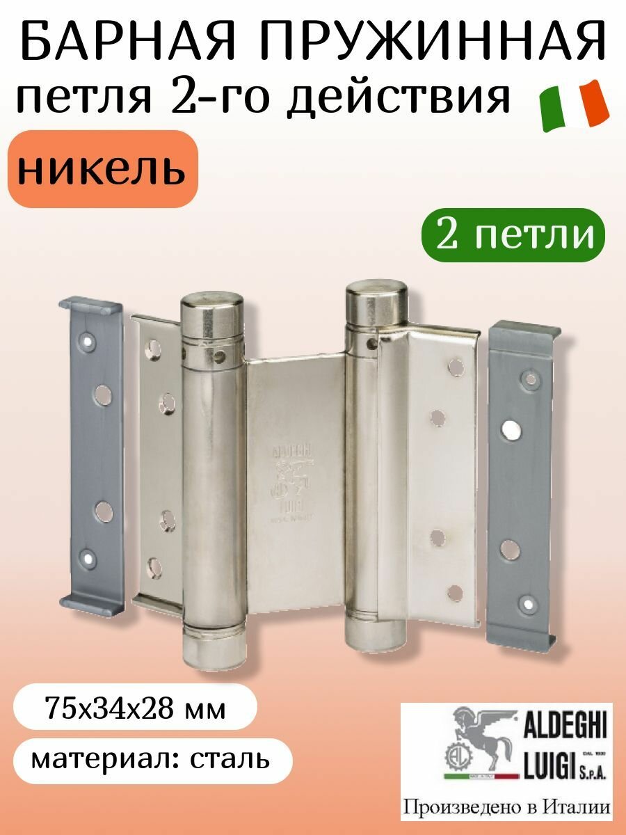 Барная пружинная петля двойного действия ALDEGHI LUIGI SpA 75х34х28 мм, никель, к-т: 2 шт + ключ с декоративными заглушками, 101AN075B2 информация: