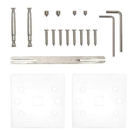 | Комплектация | Ручки - 2 шт. Стяжки M4 12(33)30 - 2 шт. Саморезы SТ4*20 - 6 шт. Винт фиксации - 4шт. Ключ шестигранный - 1 шт, шаблон - 1шт |