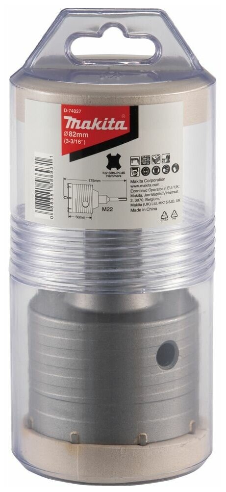 Коронка буровая SDS-plus MAKITA D-74027 в сборе 82х175 мм, m22 (центр. сверло, адаптер) информация: