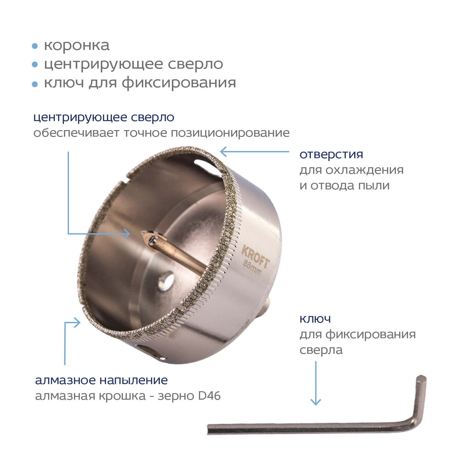 Коронка алмазная 68 мм по керамике цилиндричиский хвостовик KROFT информация: