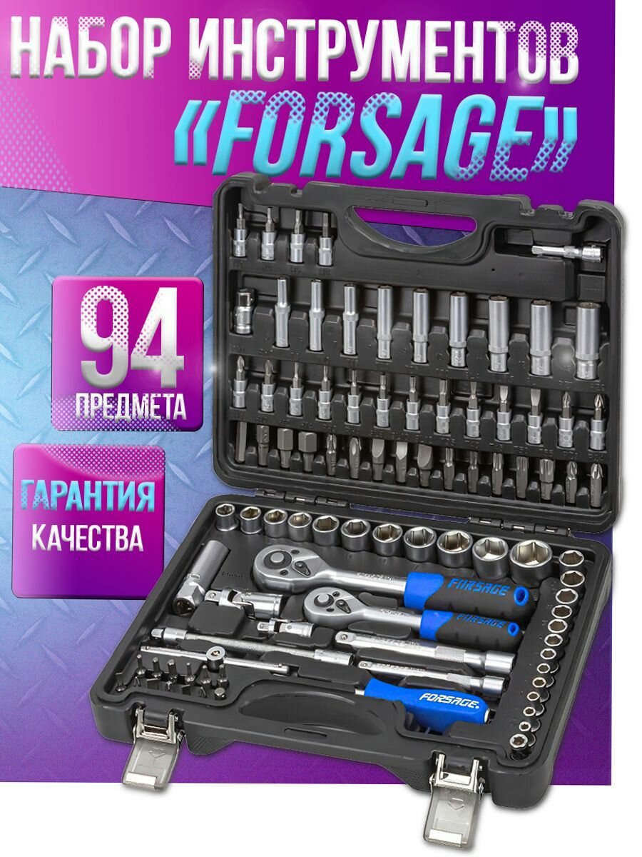 10 цен на Набор инструментов Forsage 1/4", 3/8", 6гр., 4-22 мм, 94 предмета f-4941-5ds-м 52665