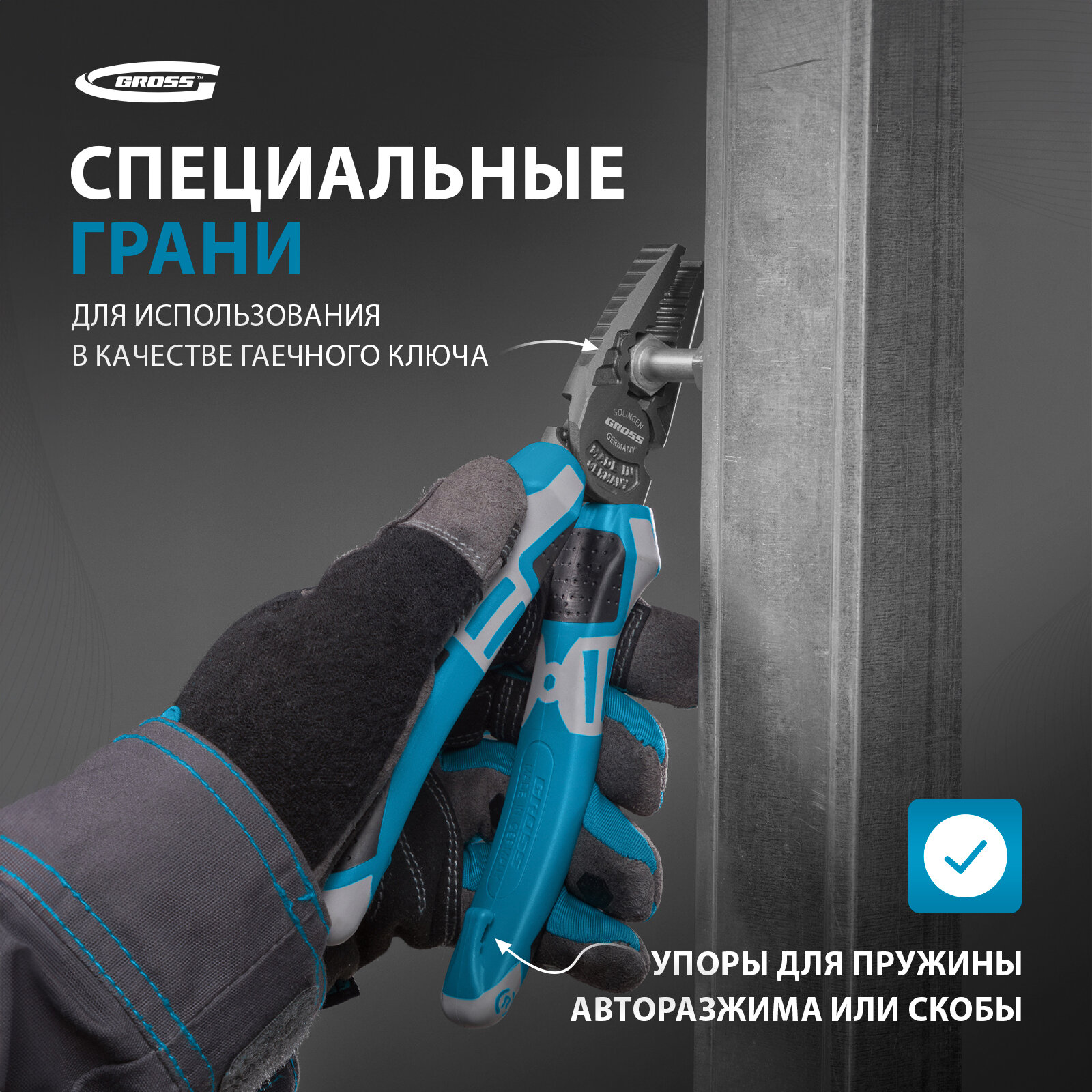 10 цен на Плоскогубцы комбинированные Gross 16973, трехкомпонентные рукоятки, 180 мм
