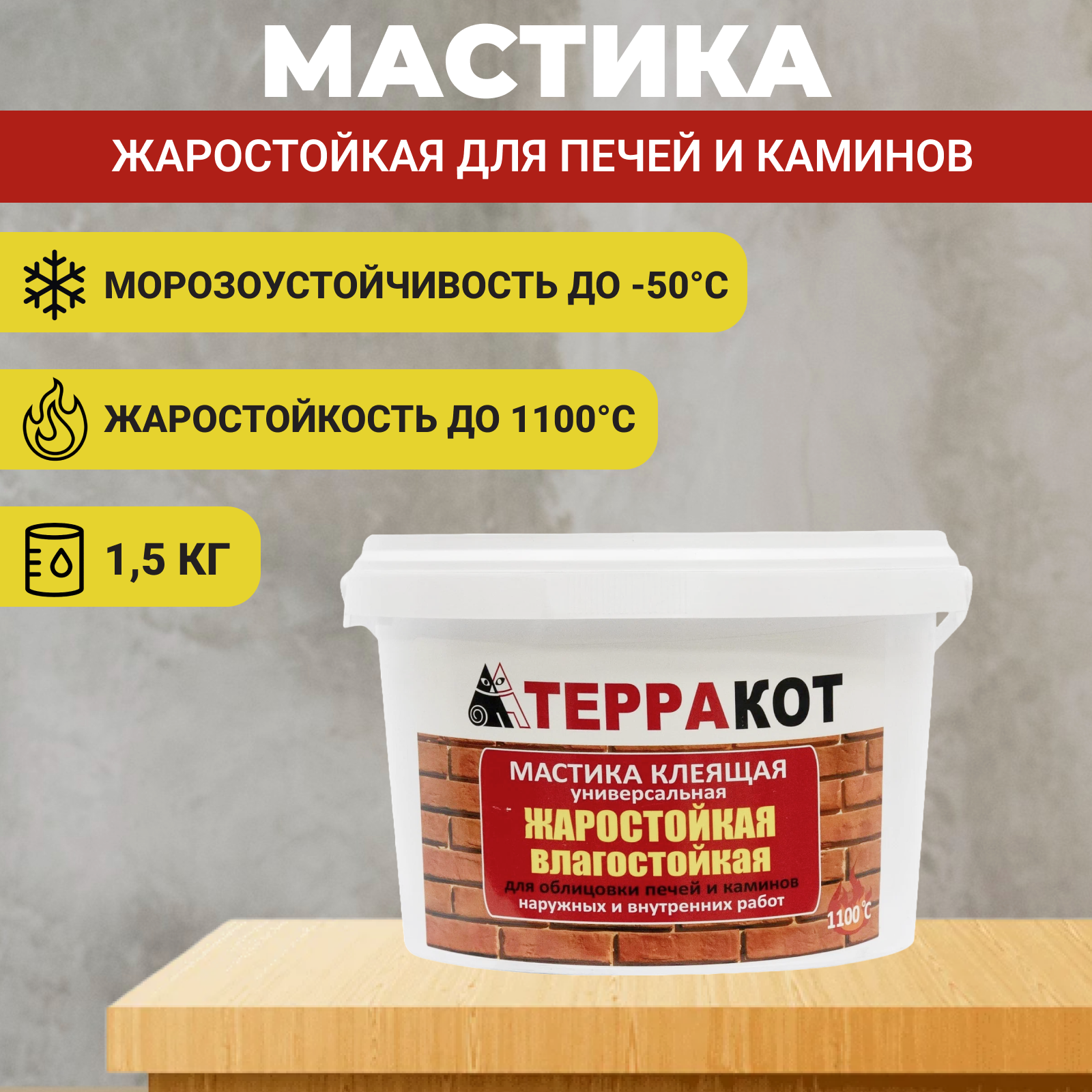 Мастика жаростойкая клеящая Терракот универсальная 1,5кг информация: