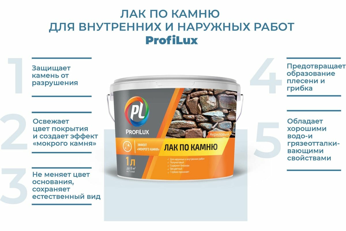 Лак по камню с эффектом мокрый камень ProfiLux полуматовый (10л) 8 440 ₽