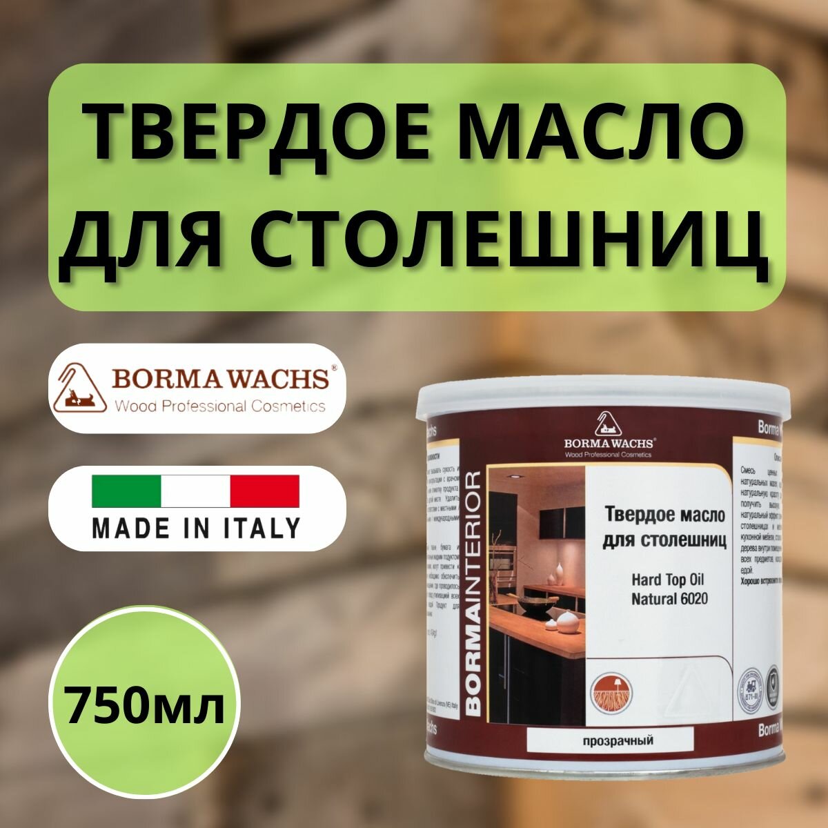BORMA WACHS (Борма) Hard top Oil Твердое масло для столешниц, 750мл., 4916, блеска 30% , полуматовое