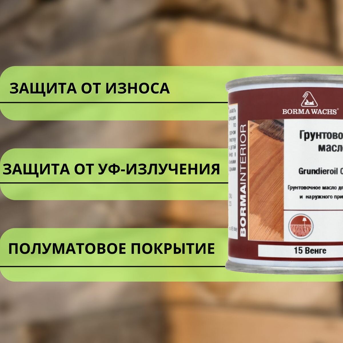 Отзывы на Масло грунтовочное BORMA GRUNDIEROIL для обработки древесины для наружных и внутренних работ 125мл, 15 Венге R3910-15.125 декоративная пропитка / морилка