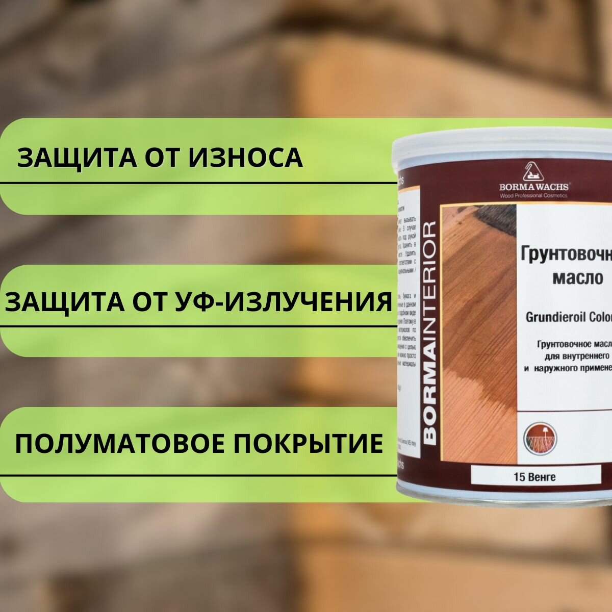 Масло грунтовочное BORMA GRUNDIEROIL для обработки древесины для наружных и внутренних работ 1л 15 Венге R3910-15 декоративная пропитка / морилка информация: