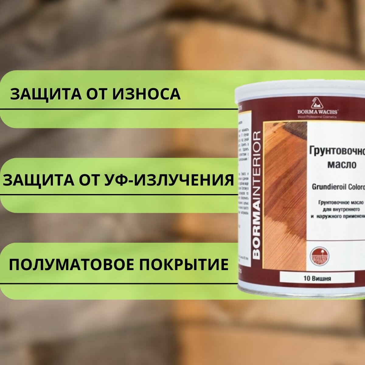 Отзывы на Масло грунтовочное BORMA GRUNDIEROIL для обработки древесины для наружных и внутренних работ 1л 10 Вишня R3910-10 декоративная пропитка / морилка