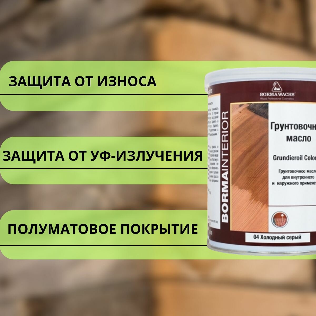 Масло грунтовочное BORMA GRUNDIEROIL для обработки древесины для наружных и внутренних работ 1л 04 Холодный серый R3910-4 декоративная пропитка / морилка информация: