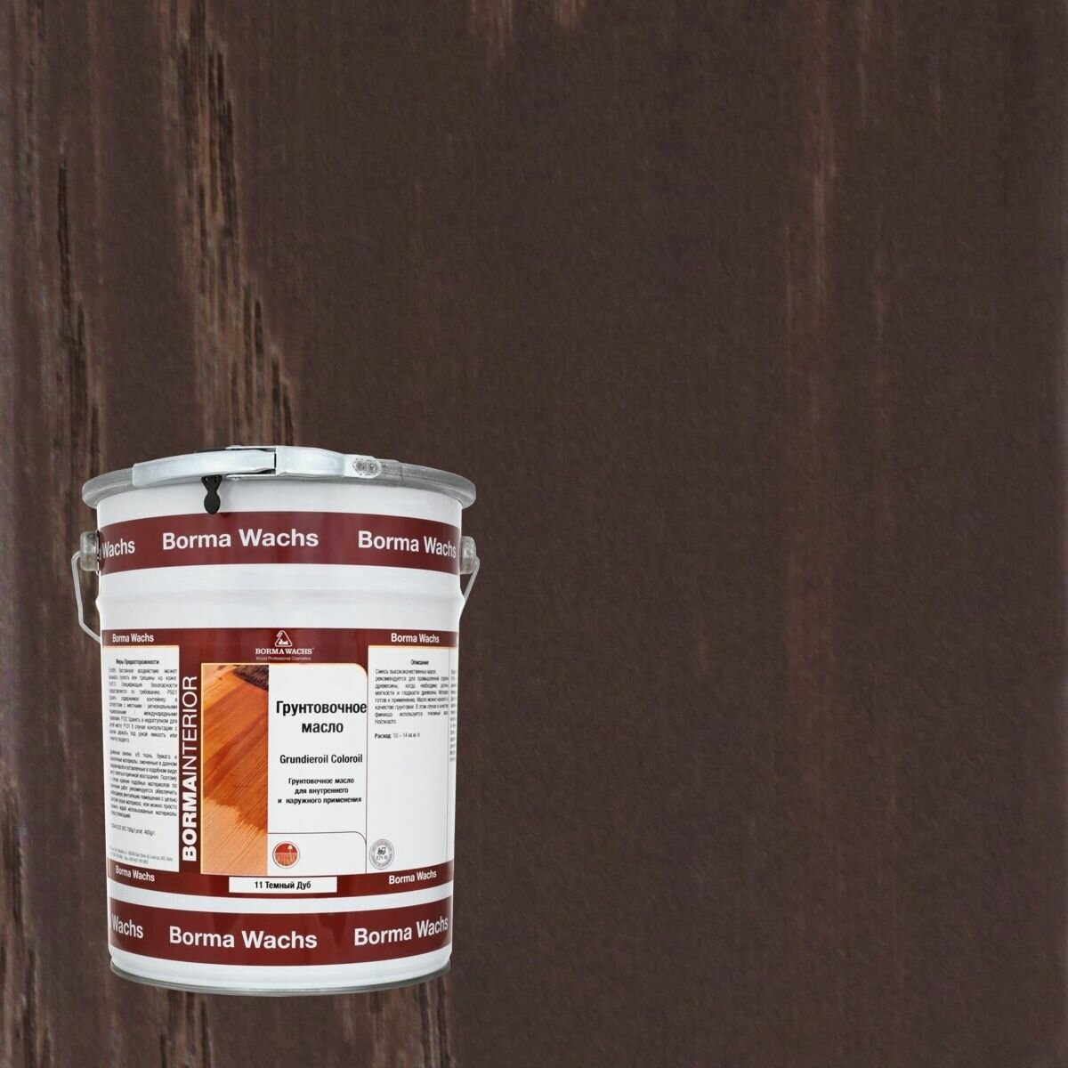 Масло грунтовочное BORMA GRUNDIEROIL для обработки древесины для наружных и внутренних работ 5л 11 Тёмный дуб R3950-11 декоративная пропитка / морилка информация: