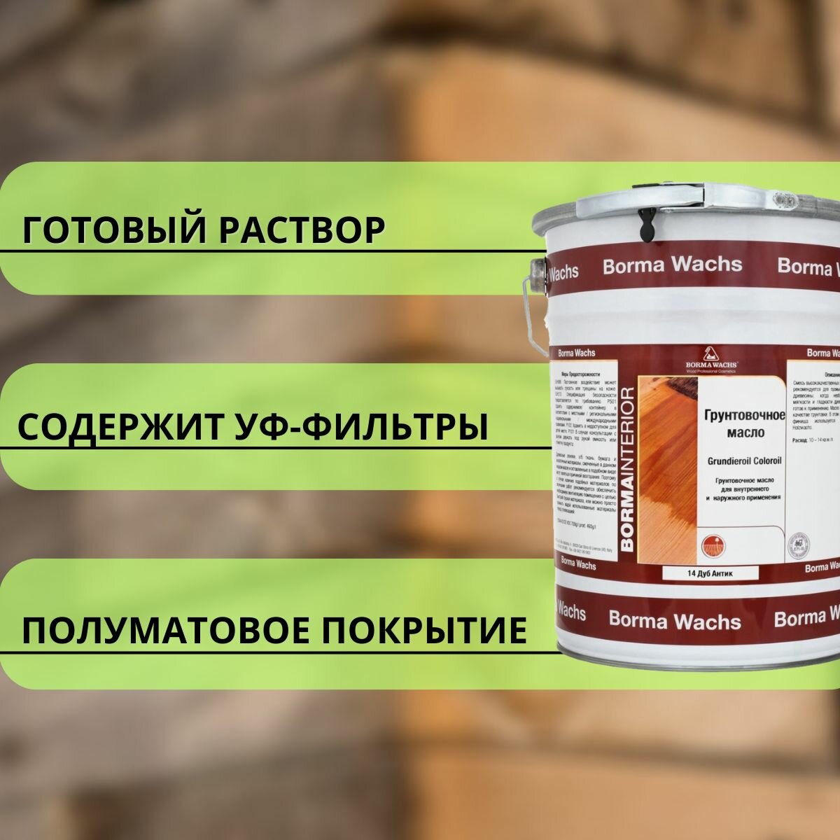 Масло грунтовочное BORMA GRUNDIEROIL для обработки древесины для наружных и внутренних работ 5л 14 Дуб антик R3950-14 декоративная пропитка / морилка информация: