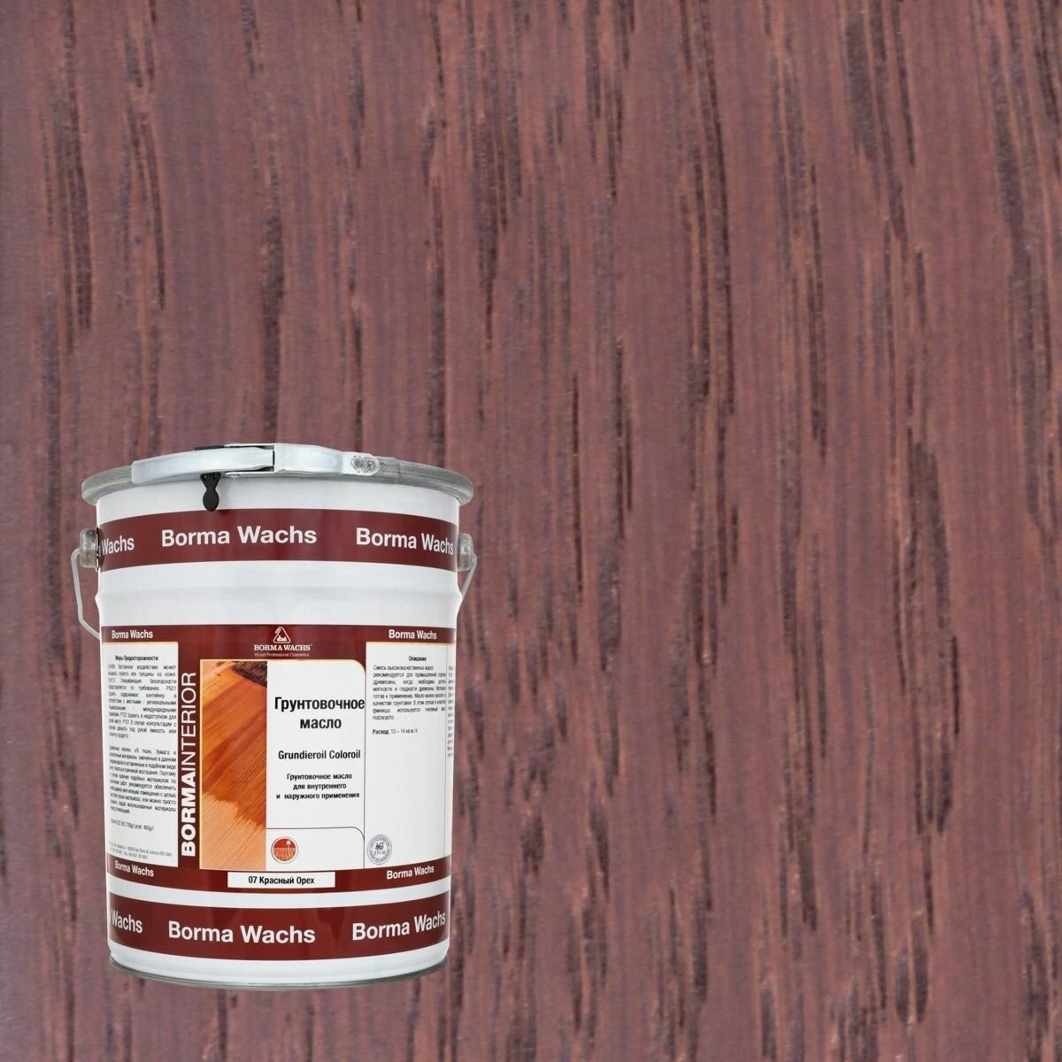 Масло грунтовочное BORMA GRUNDIEROIL для обработки древесины для наружных и внутренних работ 5л 07 Красный орех R3950-7 декоративная пропитка / морилка информация: