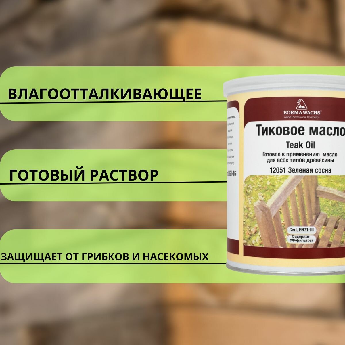 Масло тиковое BORMA TEAK OIL 1л 1461 Зеленая сосна EN0361-DS1461 информация: