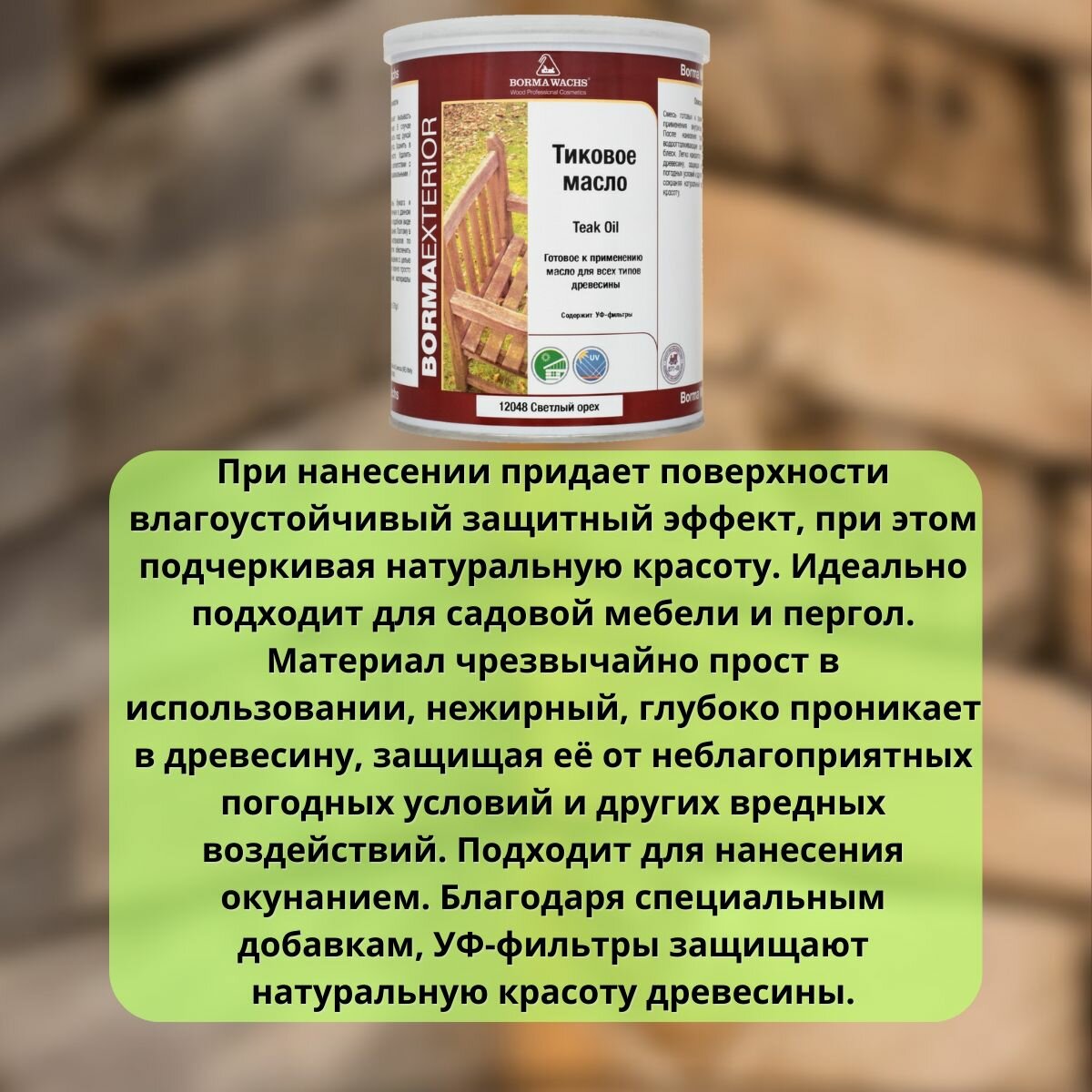 Масло тиковое BORMA TEAK OIL 1л 531 Светлый орех EN0361-LS531 информация: