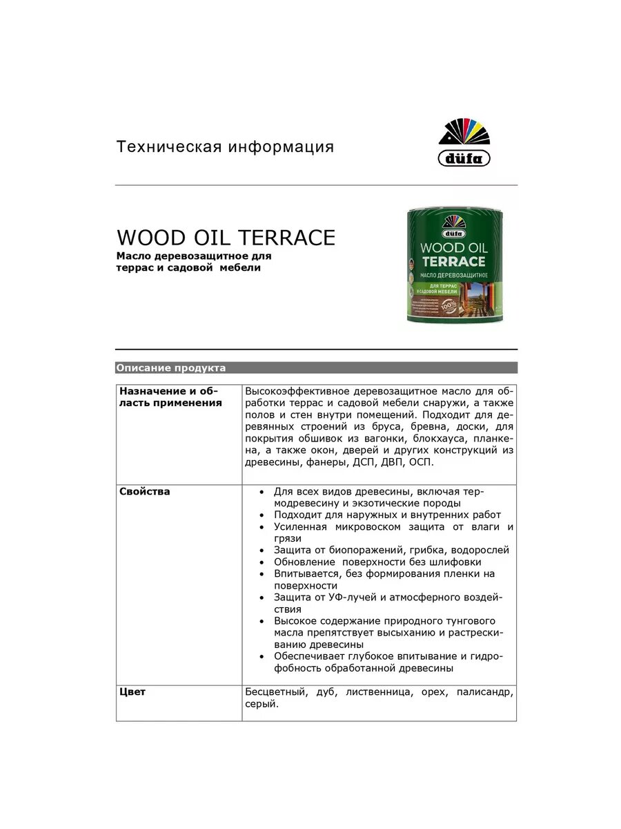 "Dufa Wood Oil Terraсe" - деревозащитное масло для дерева бесцветный, 0,8 л