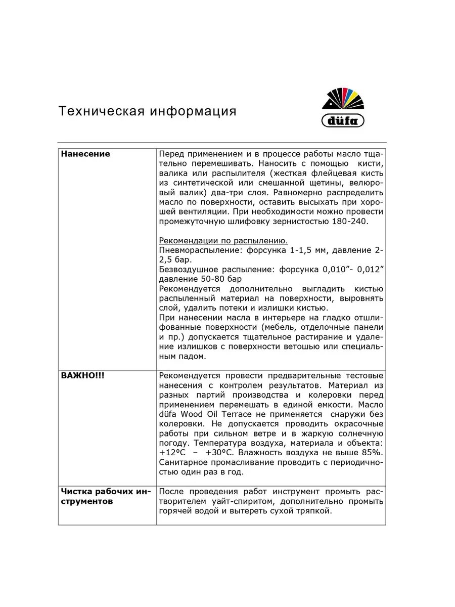 Масло Dufa Wood Oil Terrасe для террас и мебели палисандр 0,9л 1 749 ₽