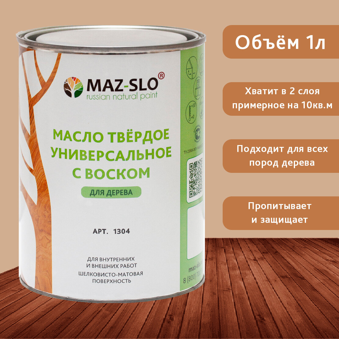 Масло для дерева с воском для наружных и внутренних работ MAZ-SLO, 1 литр информация:
