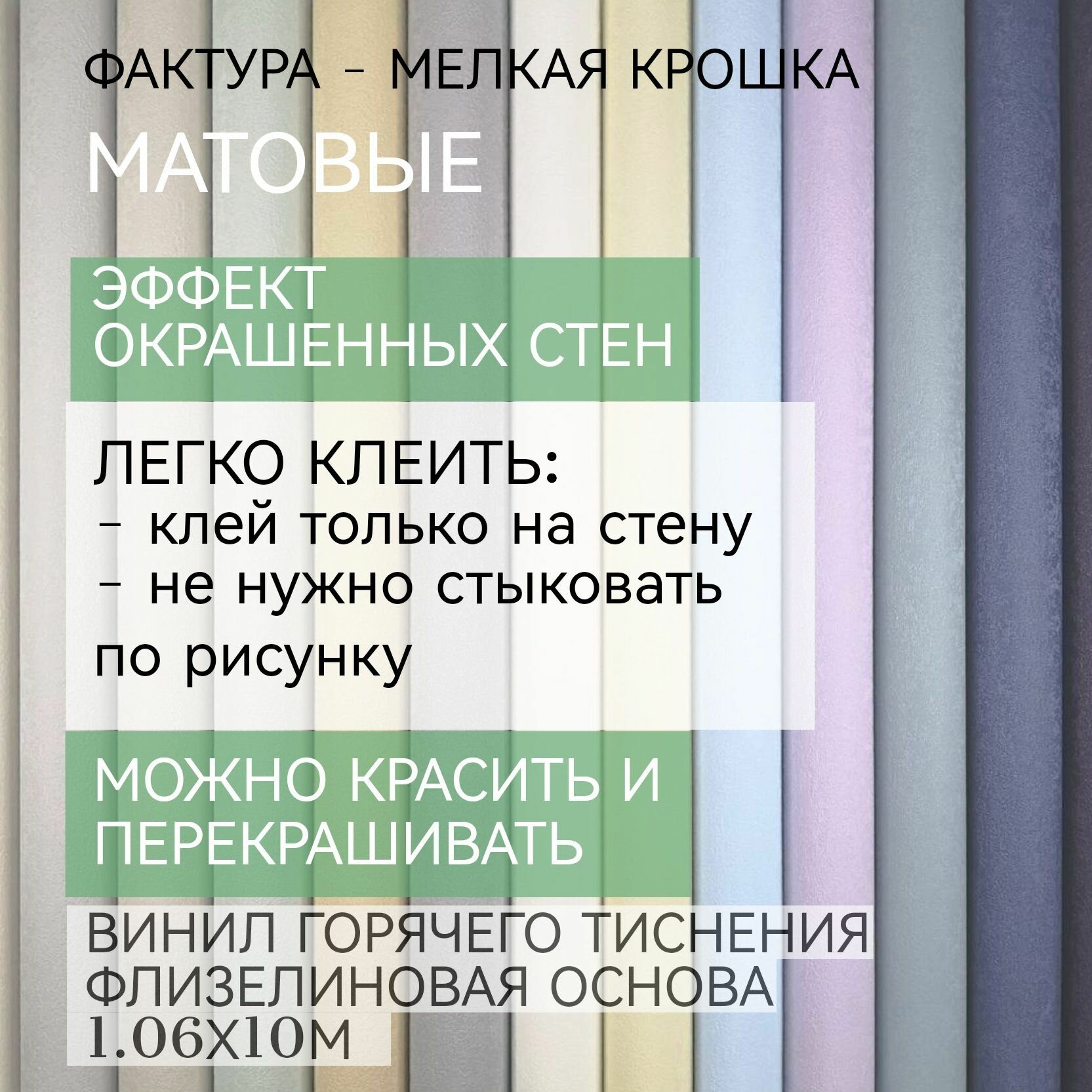 Обои флизелиновые 1.06х10м, матовые с эффектом окрашенных стен, можно перекрашивать 2 725 ₽