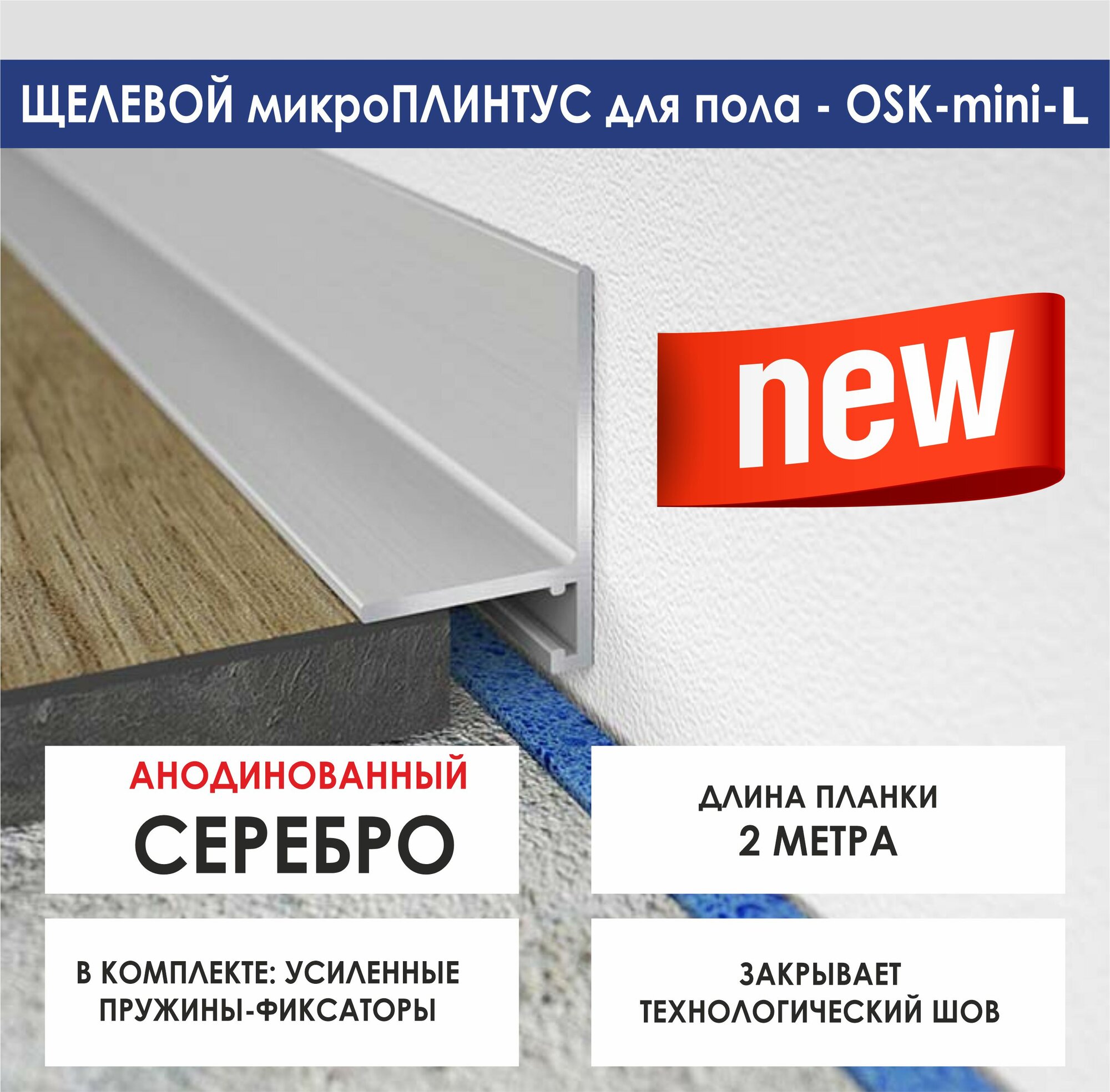 Микроплинтус OSKprofil 2 м, серебро, с пружинами, 25х16х2000 мм информация: