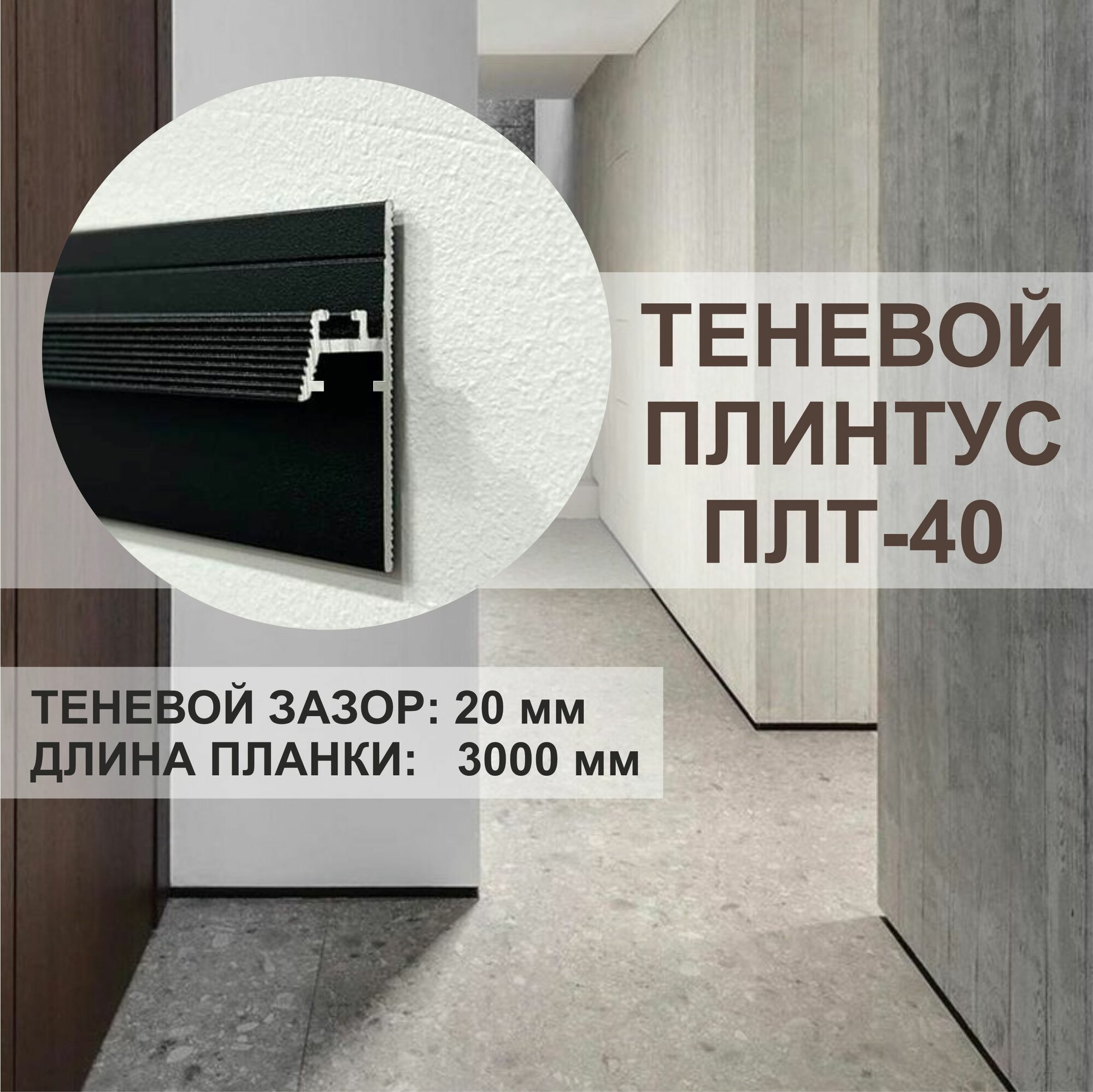 Теневой профиль-плинтус Oskprofil ПЛТ-40, 3 метра , черный муар информация:
