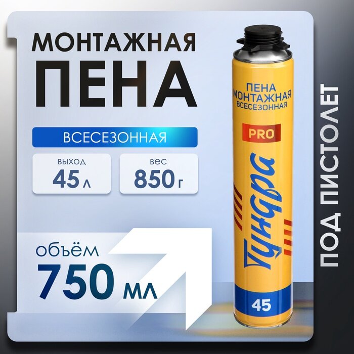 Пена монтажная Тундра Pro, пистолетная, всесезонная, выход 45 л, 750 мл Тундра 9293709 . информация: