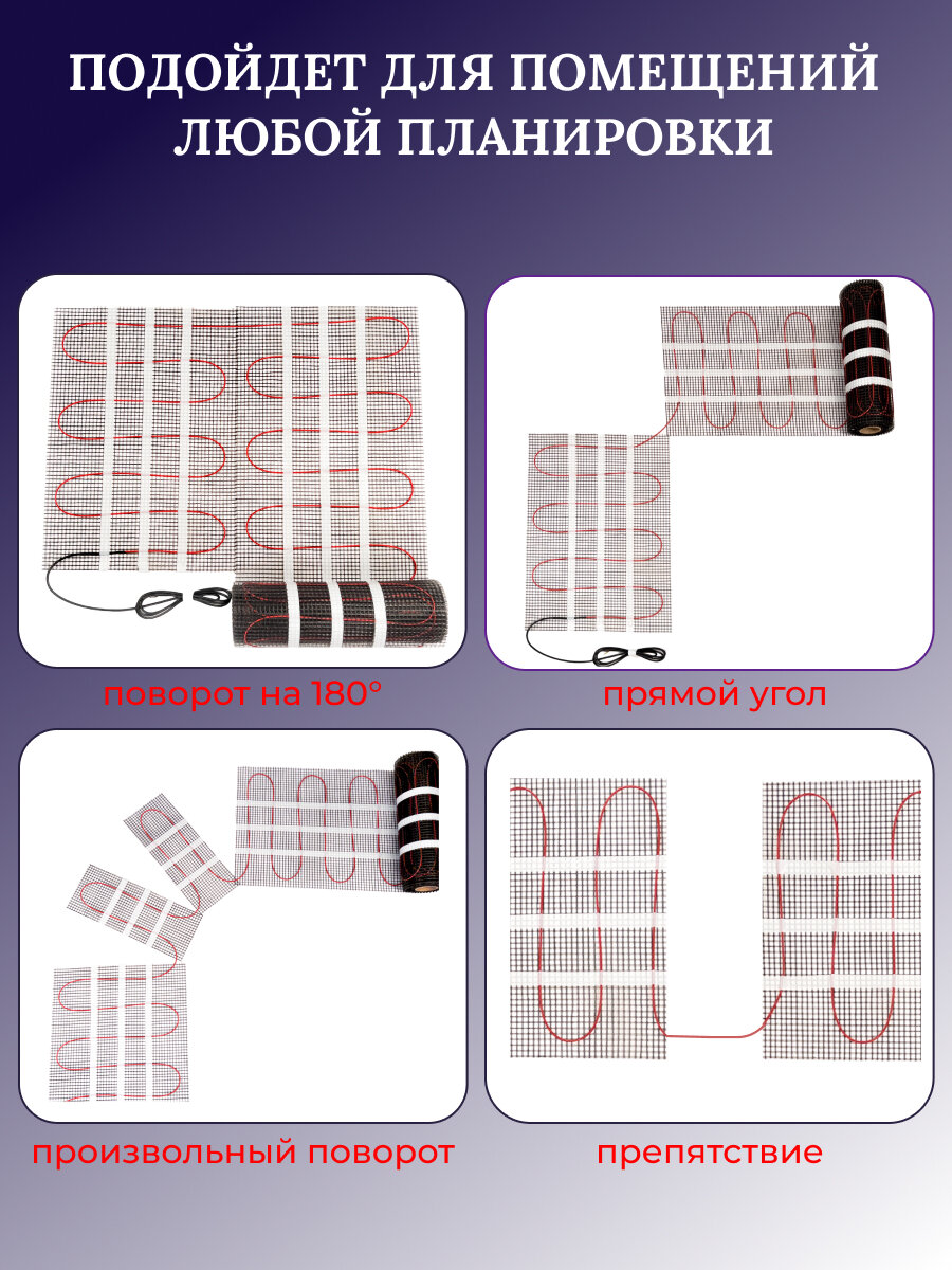 Электрический теплый пол под плитку NUNICHO 1 м2, 150 Вт/м2 двужильный экранированный нагревательный мат;