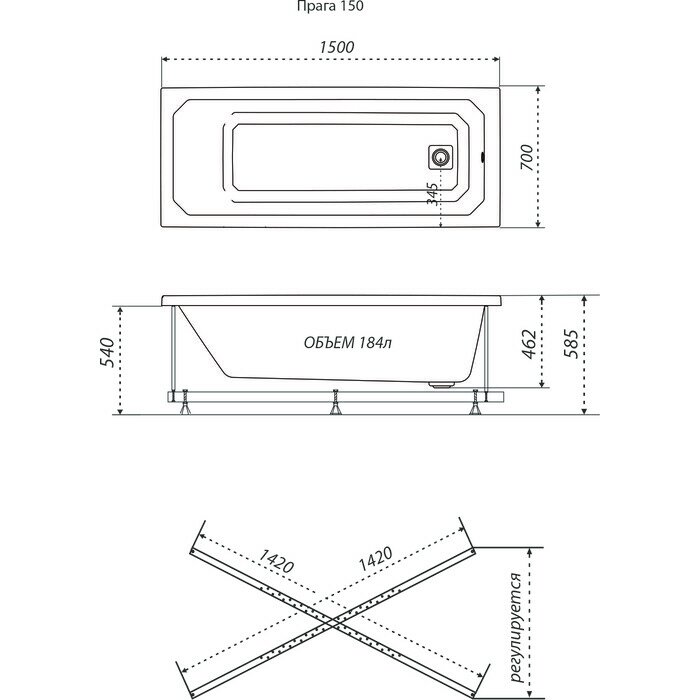 Отзывы на Акриловая ванна Triton Прага 150х70 на каркасе, с фронтальной панелью (Щ0000049391, Щ0000049120)