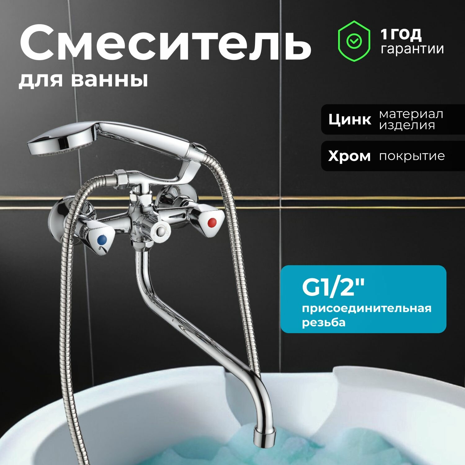 Смеситель для ванны с душем с длинным поворотным изливом NNF-0012 вентильный кран в ванную, для раковины цвет: хром информация: