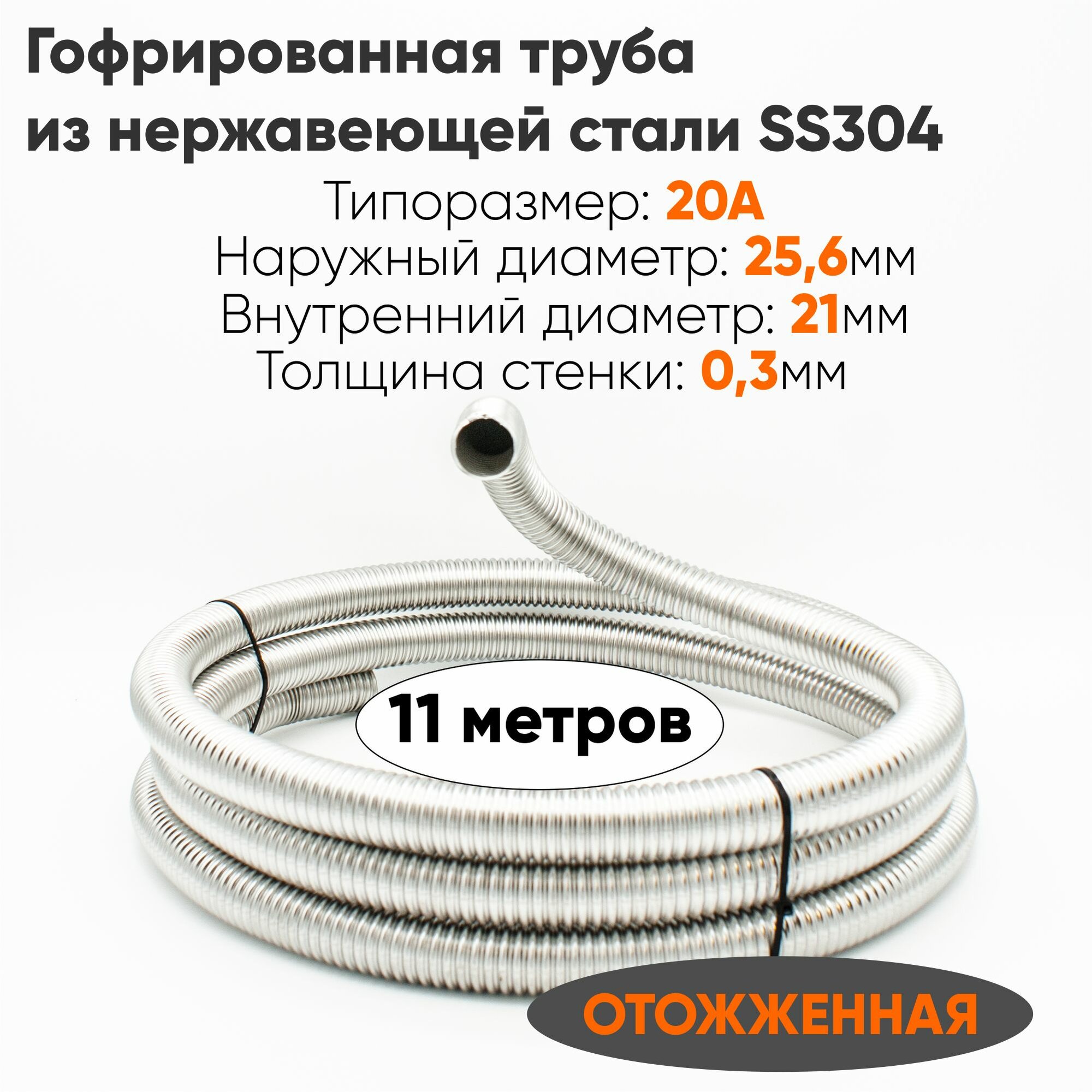 Труба гофрированная из нержавеющей стали SS304 для воды, отопления, теплообменника Stahlmann 20А, отожженная, 11 метров информация: