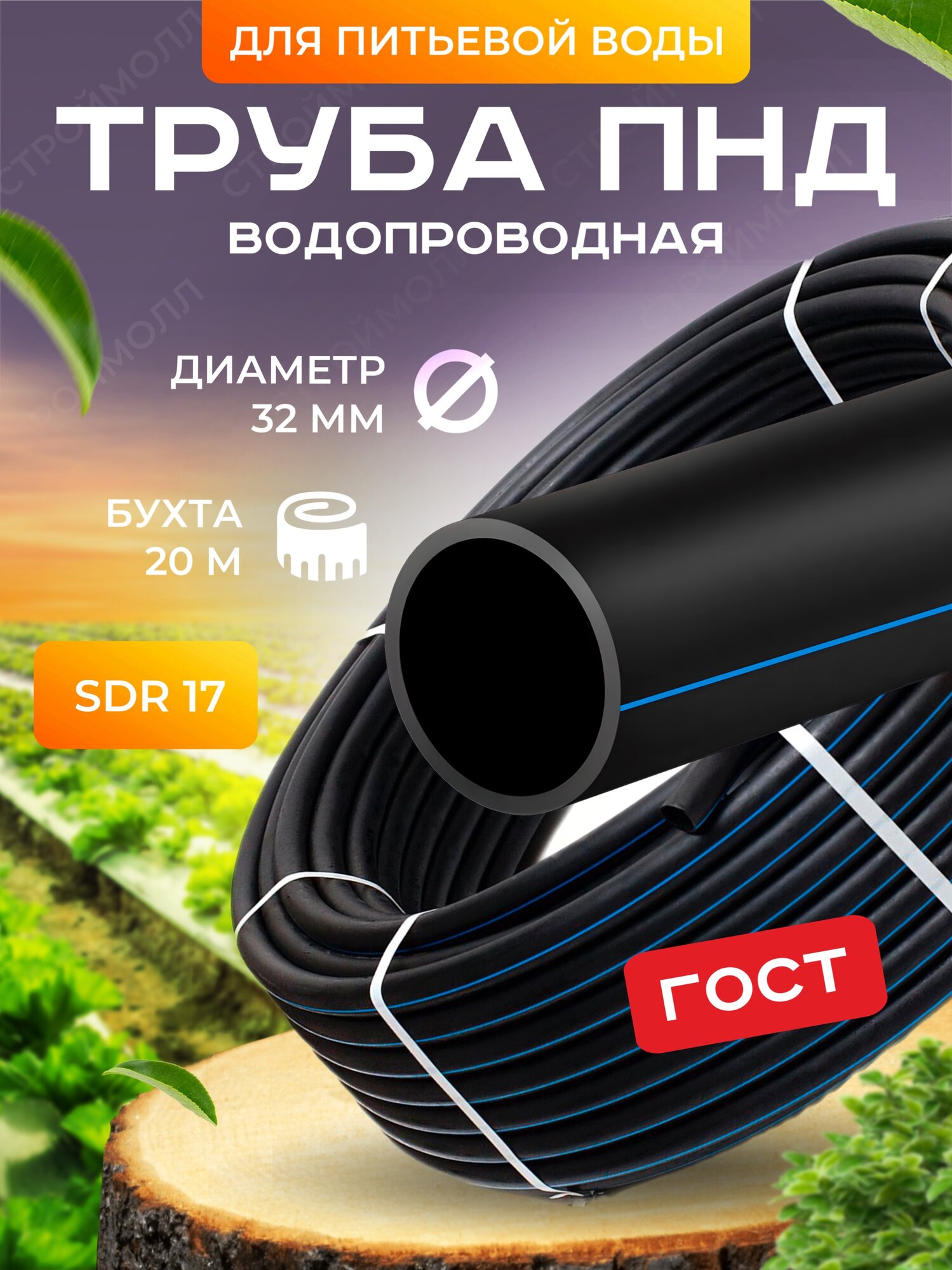 10 цен на Труба полиэтиленовая питьевая напорная ПНД, диаметр 32 мм, длина 20 м