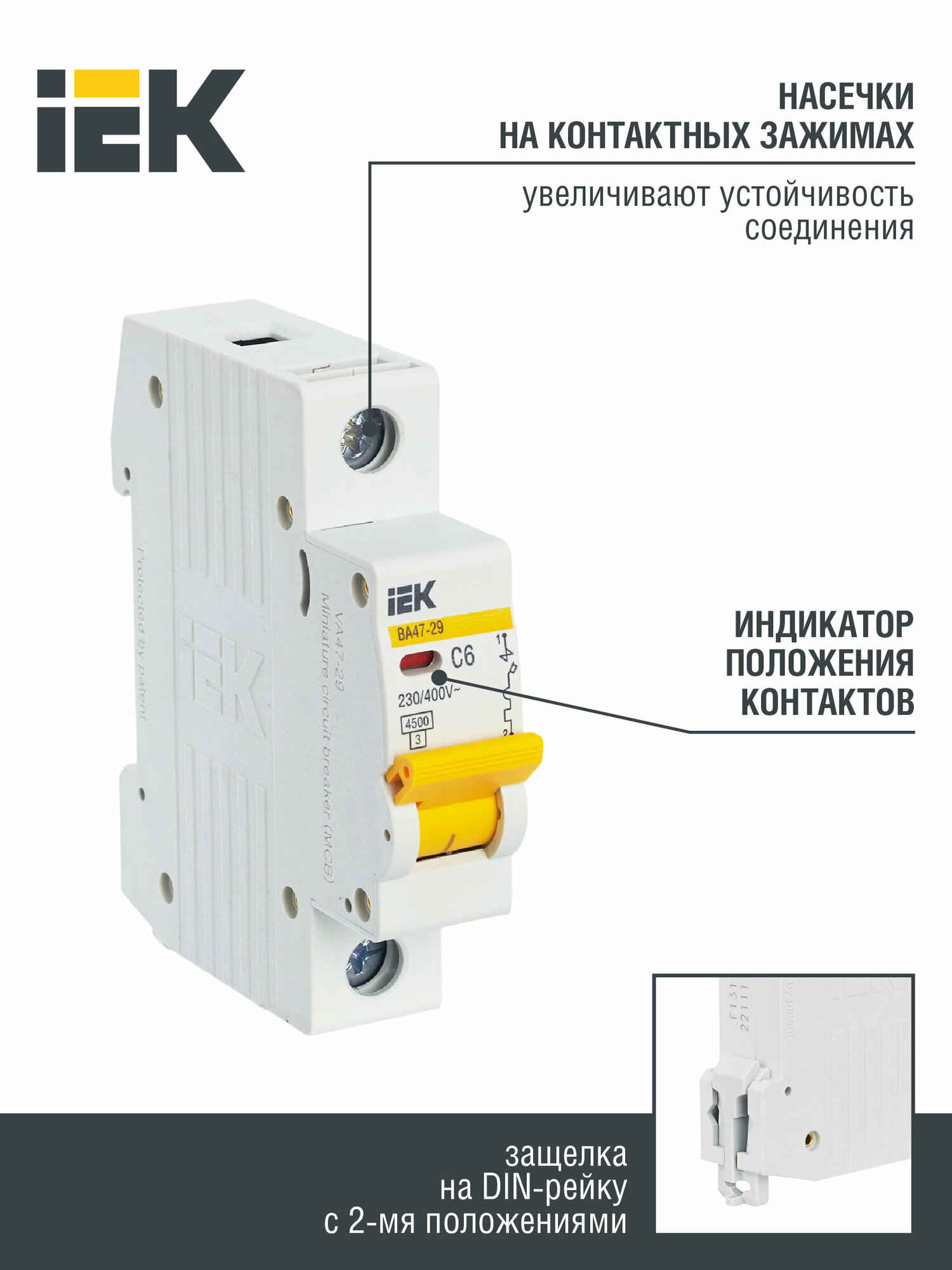 Выключатель автоматический 1-пол. (1P) 6А C 4.5кА ВА47-29 IEK информация: