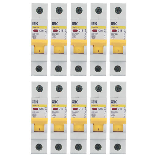 Автоматический выключатель IEK ВА47-29 1P 16А характеристика C (комплект из 2 шт)