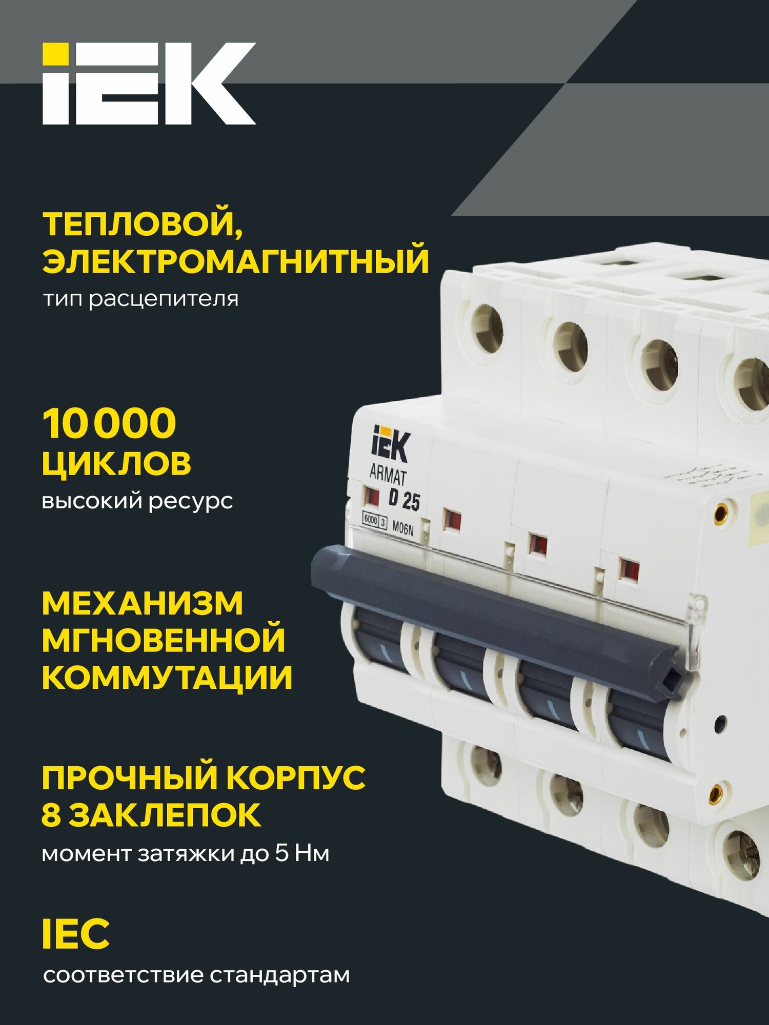 IEK ARMAT Автоматический выключатель M06N 4P D 25А AR-M06N-4-D025 информация: