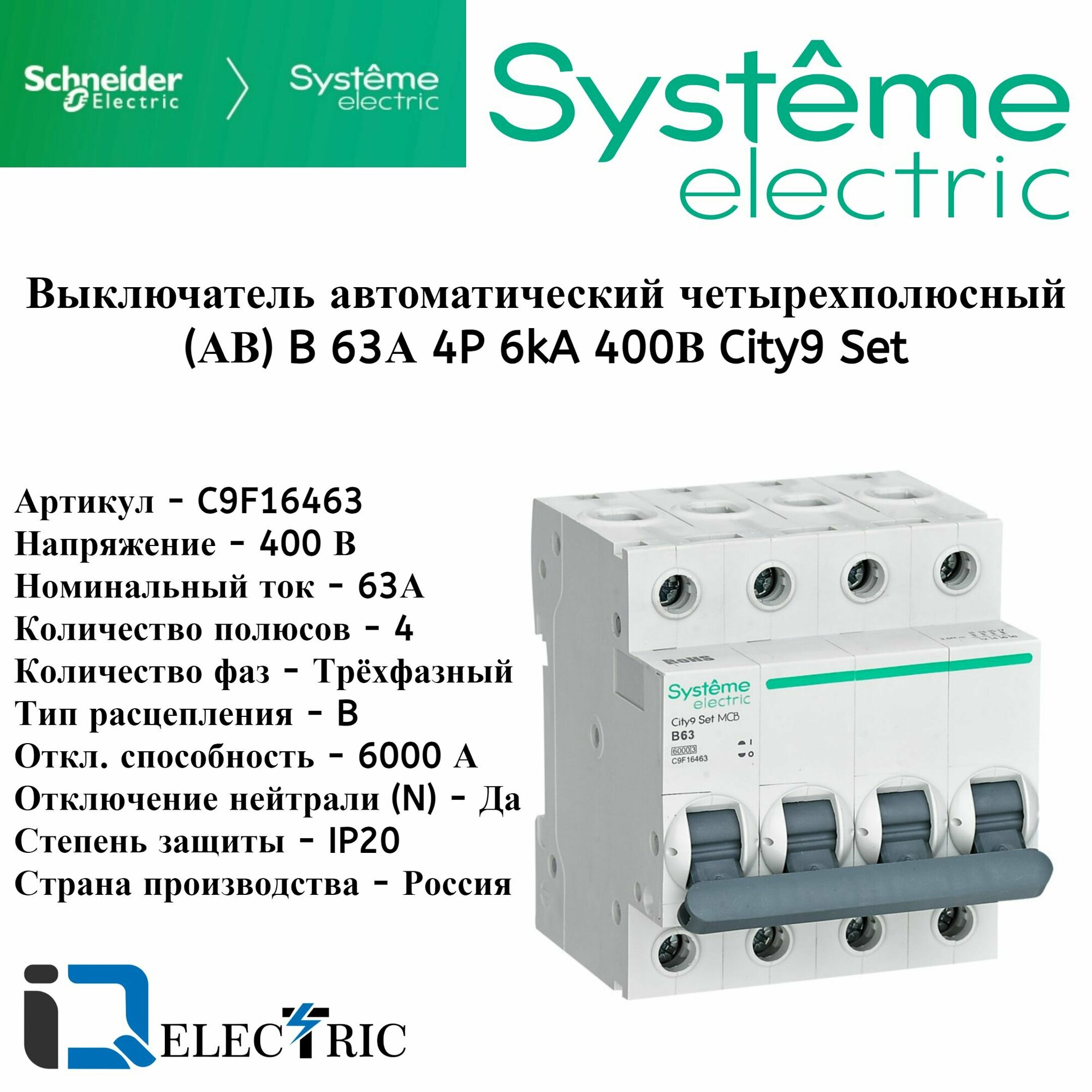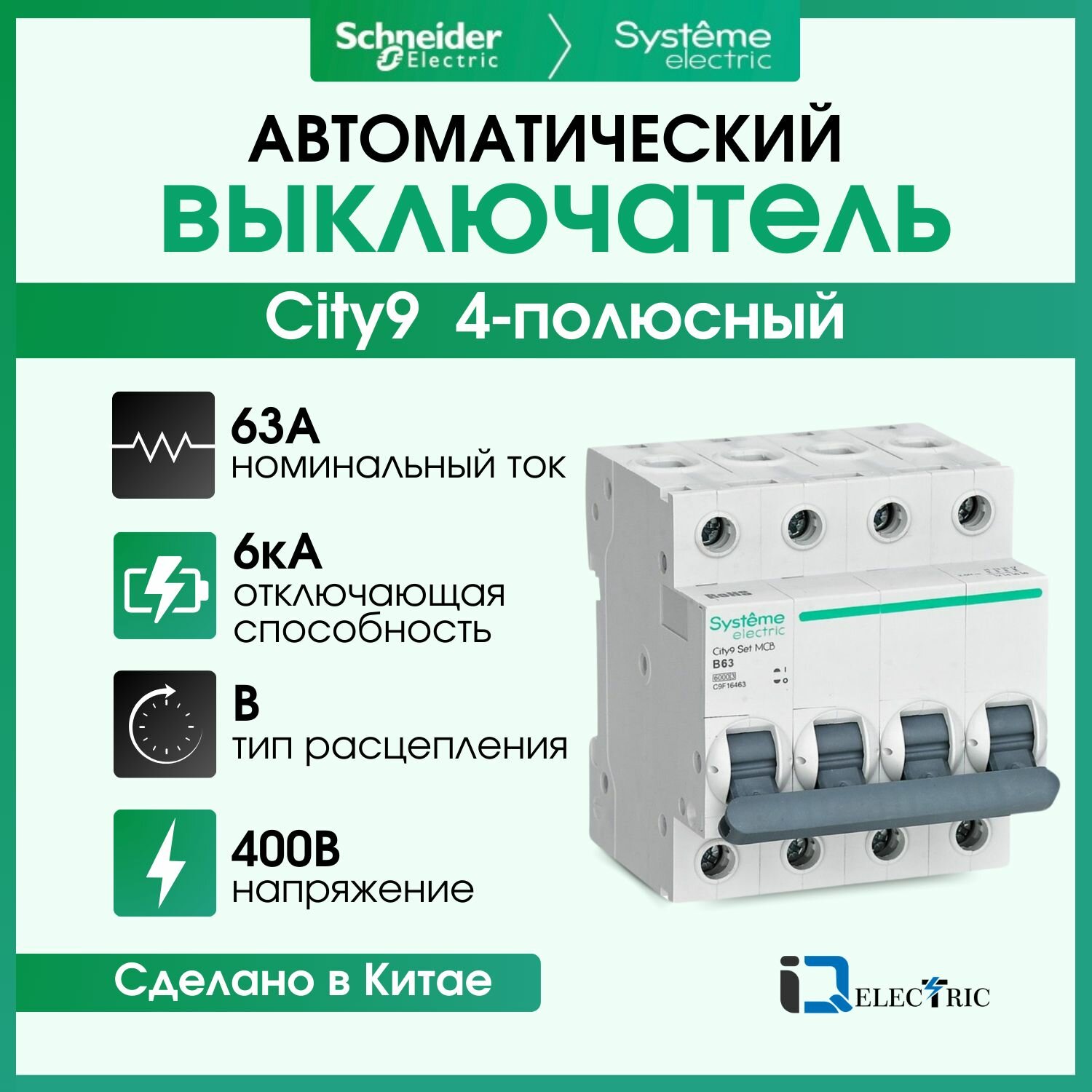Systeme Electric City9 Set Автоматический выключатель (АВ) B 63А 4P 6kA 400В 5 088 ₽