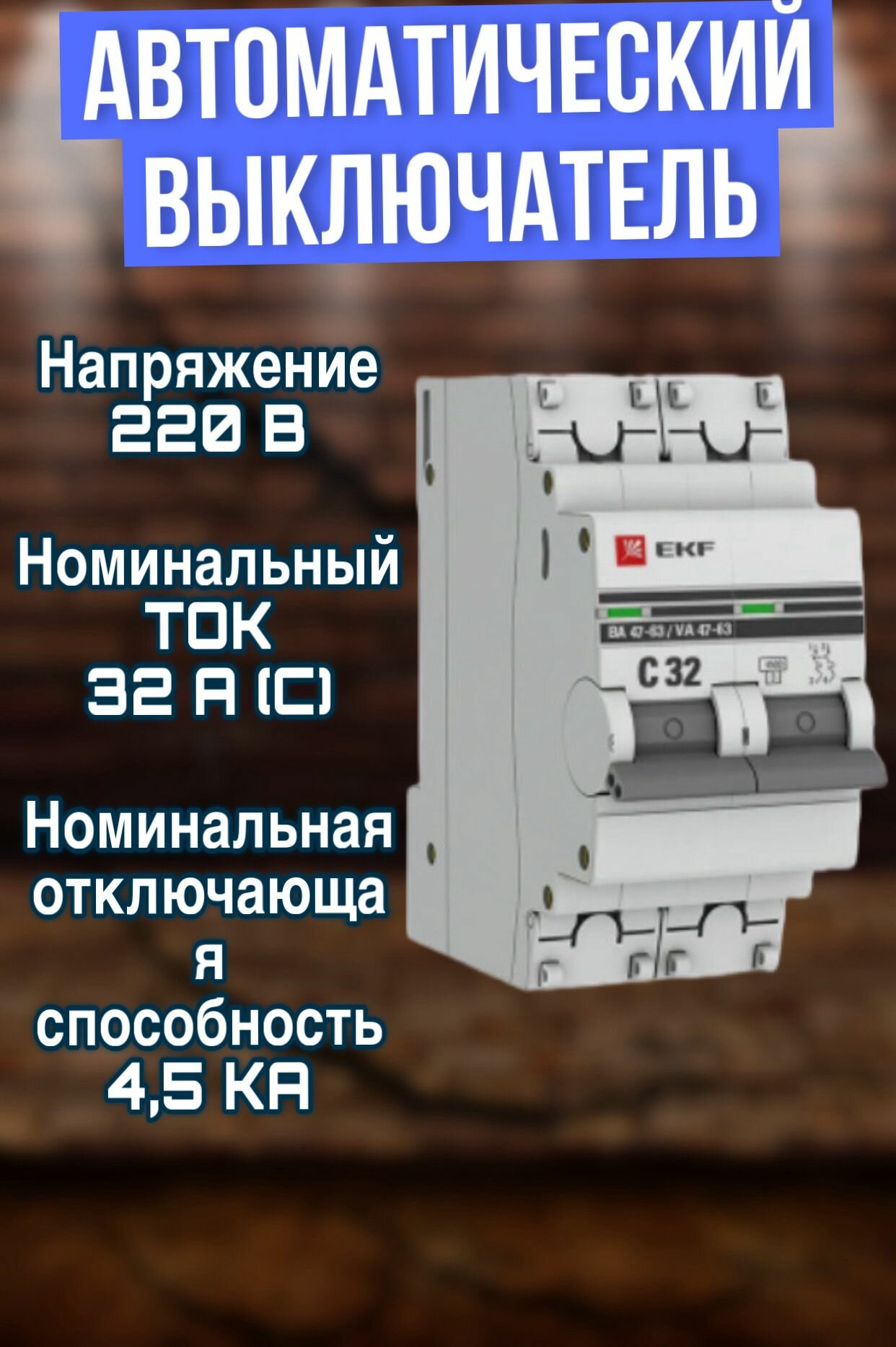 Выключатель автоматический 2-полюсный (2P) 32А C 4.5кА ВА47-29 Basic EKF (комплект 2 шт)
