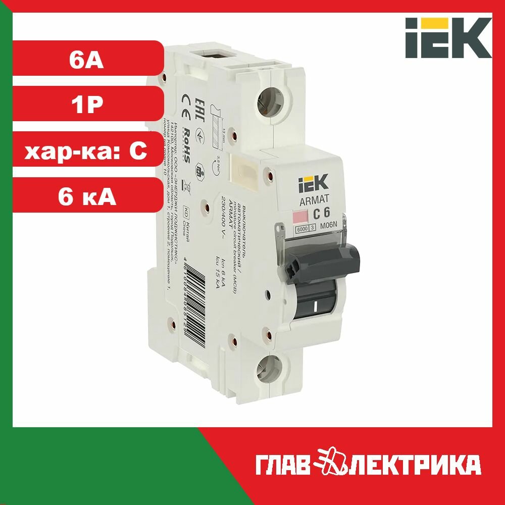 Автоматический выключатель IEK ARMAT M06N 1P C 6А AR-M06N-1-C006 однополюсный информация: