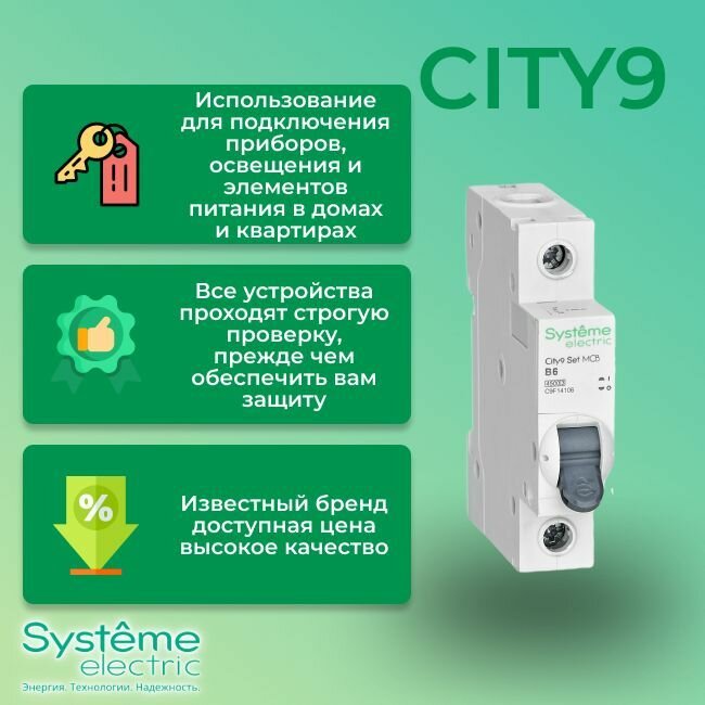 Автоматический выключатель Systeme Electric 1P 6А тип В 4,5кА City9 - 1 шт. информация: