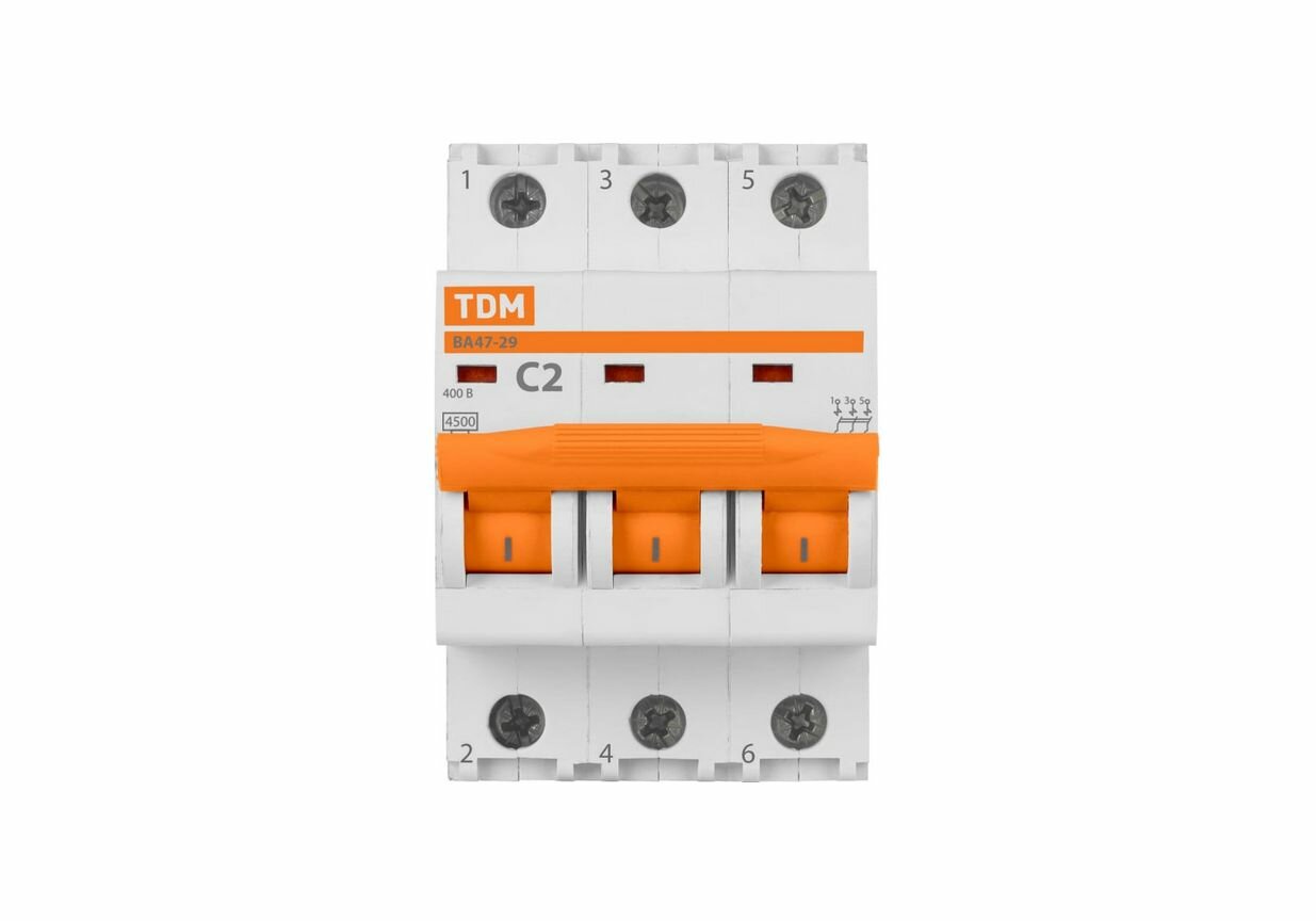 Автоматический выключатель TDM ВА47-29 3Р 2А 4.5кА С SQ0206-0101 информация: