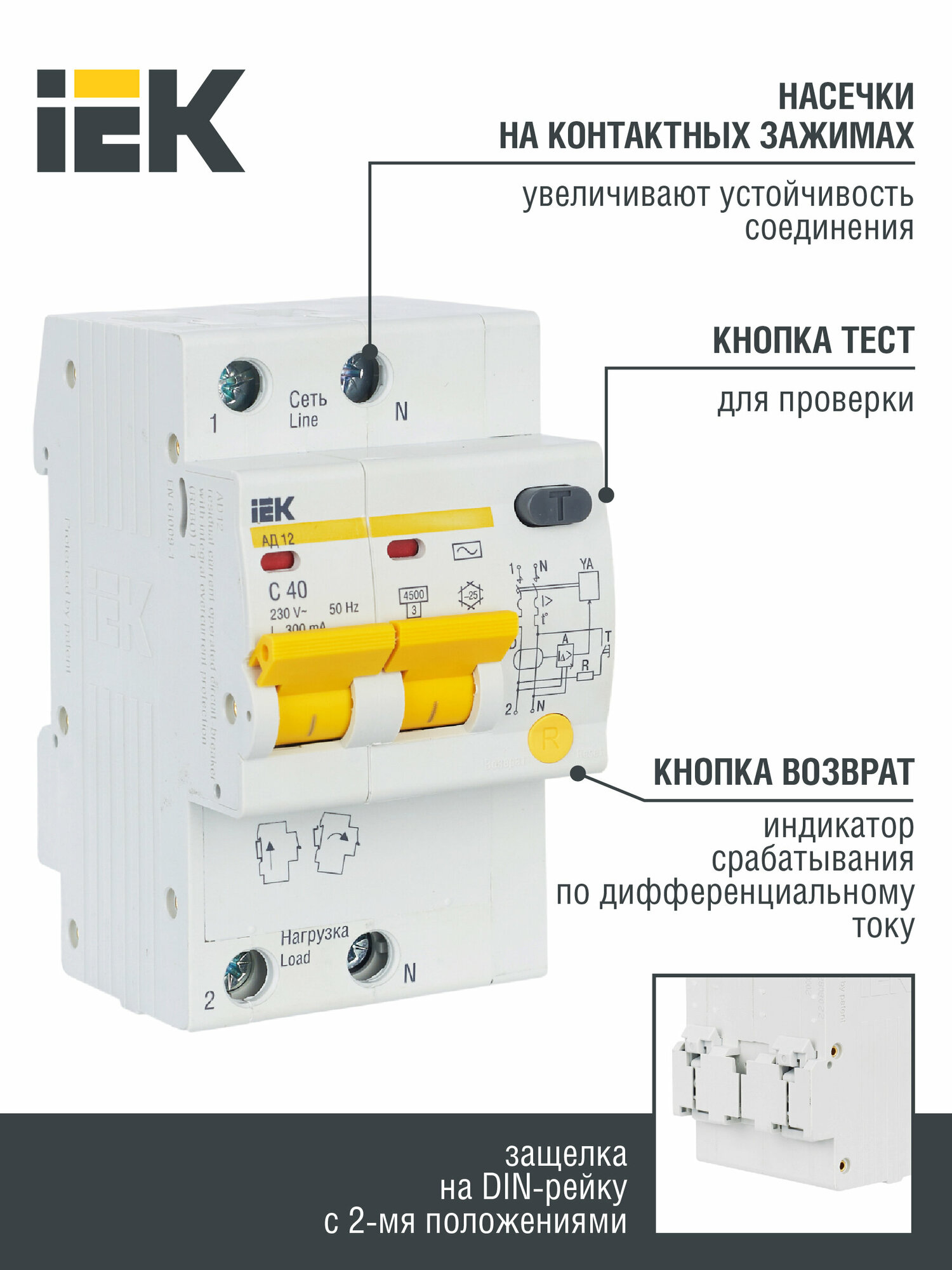 Отзывы на Автоматический выключатель дифференциального тока IEK 2р C 40A 300mA тип AC 4.5kA АД-12 ИЭК MAD10-2-040-C-300