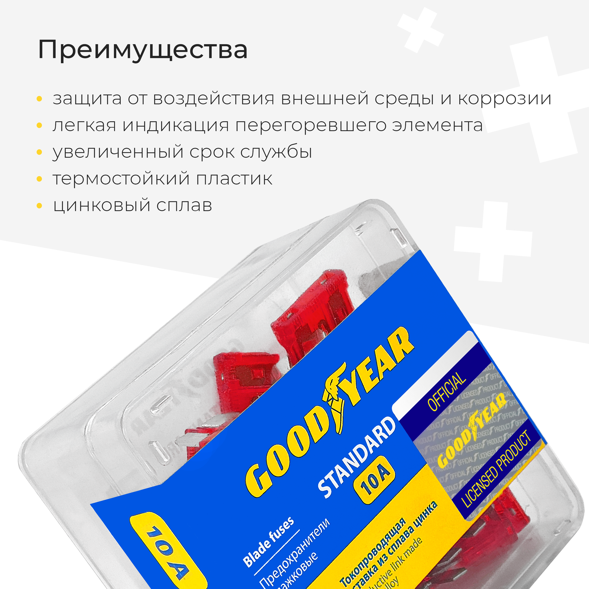 Предохранитель плоский 10A 50шт (Goodyear) информация: