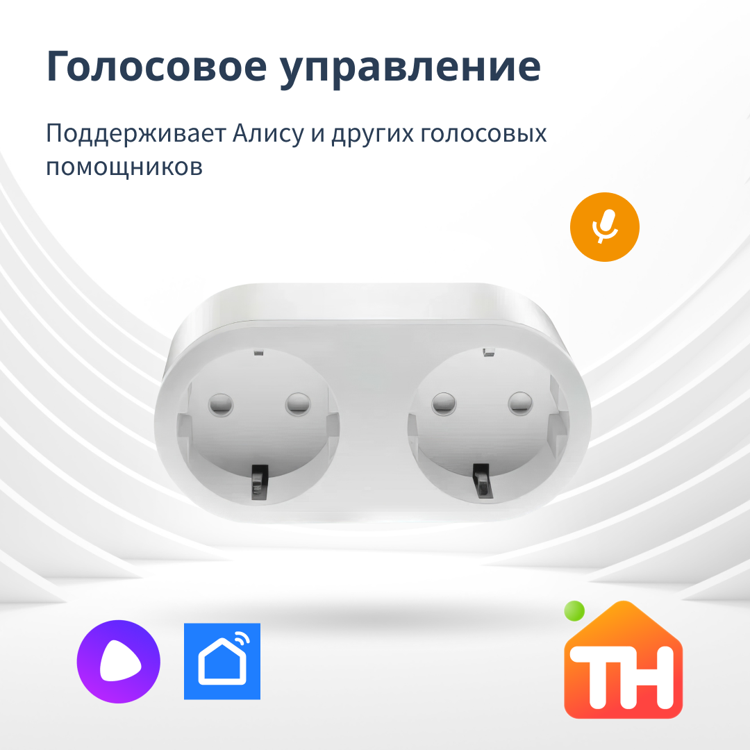 Умная двойная розетка с Алисой, Wi-Fi и двумя разъемами информация: