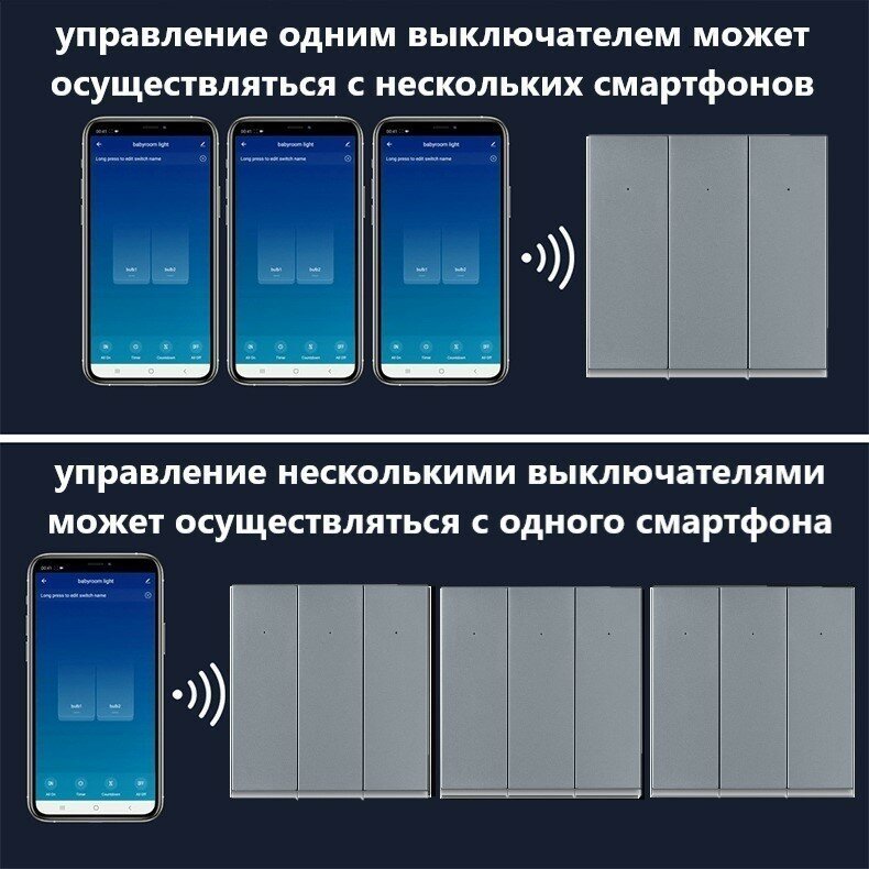 Отзывы на Умный выключатель Tuya с Алисой WI FI, Bluetooth 3-клавишный серый матовый универсальный, конденсатор в комплекте