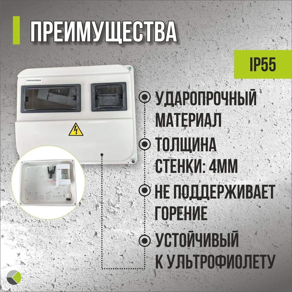 | Дополнительные функции | место под электрический счётчик, окошко для доступа к сетям |