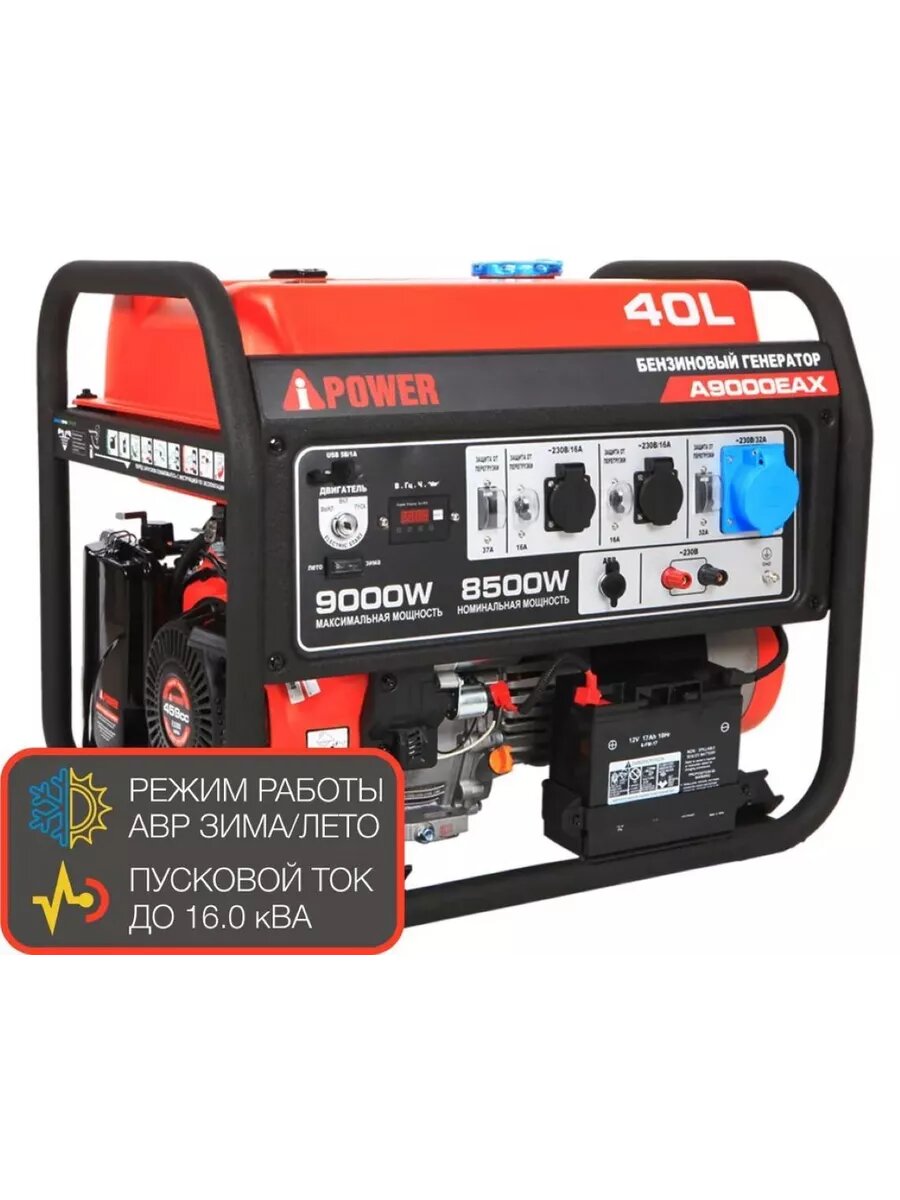 Генератор бензиновый инверторный A- IPOWER A8000IS 8кВт, 105кг бензогенератор с ручным и электро запуском двигателя, электростанция